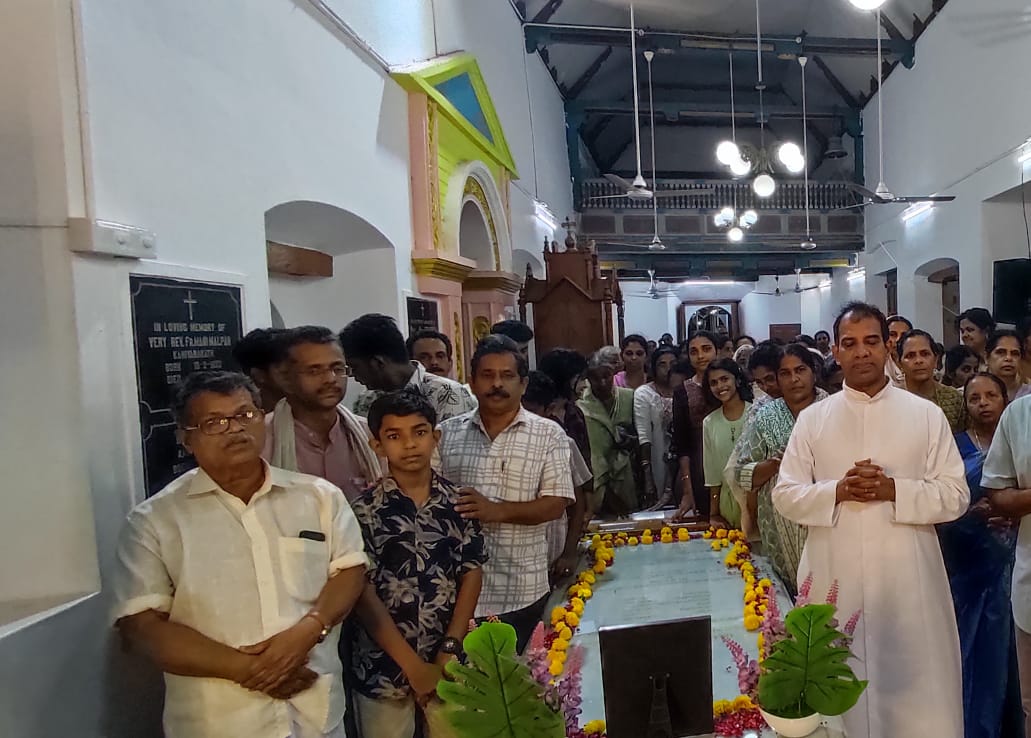 On the seventh day the child was baptised in the parish church, Ramapuram. It is the baptising priest who calls a baby by a name for the first time..